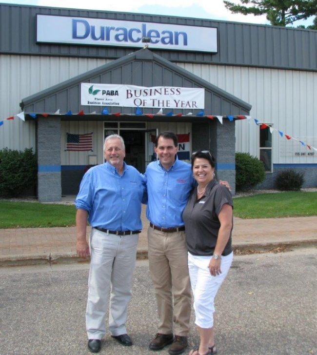Al & Tammy Jankowski, owners of Duraclean Specialists in Plover, WI had the honor of hosting Wisconsin Governor, Scott Walker’s recent press conference. His staff and local government decided to hold the conference in front the recent Plover Area Business Association’s Business of the Year.