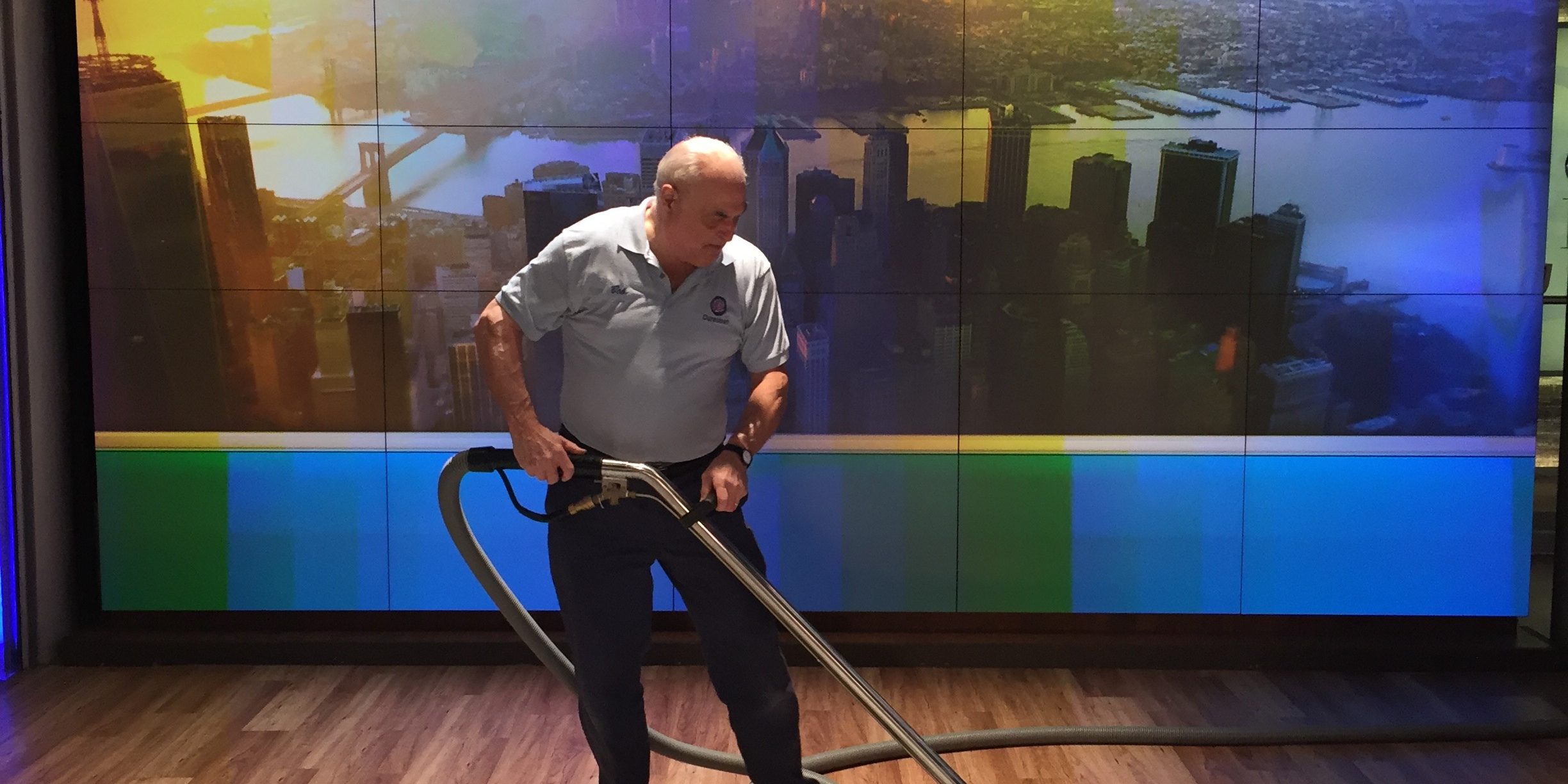Bob Mestrandrea of Glendale, NY cleans the carpets where The Harry Connick Jr. Show, CBS This Morning and Inside the NFL are taped.
