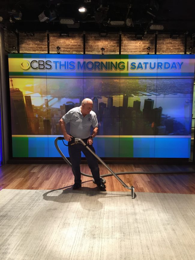 Duraclean cleans the carpets at CBS studios. Bob Mestrandrea of Glendale, NY cleans the carpets where The Harry Connick Jr. Show, CBS This Morning and Inside the NFL are taped.