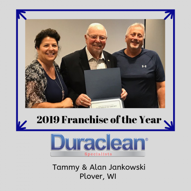 Congratulations to the Duraclean 2019 Franchise of the Year, Duraclean Specialist in Plover, Wisconsin. Thank you for outstanding customer service, brand marketing and system support.